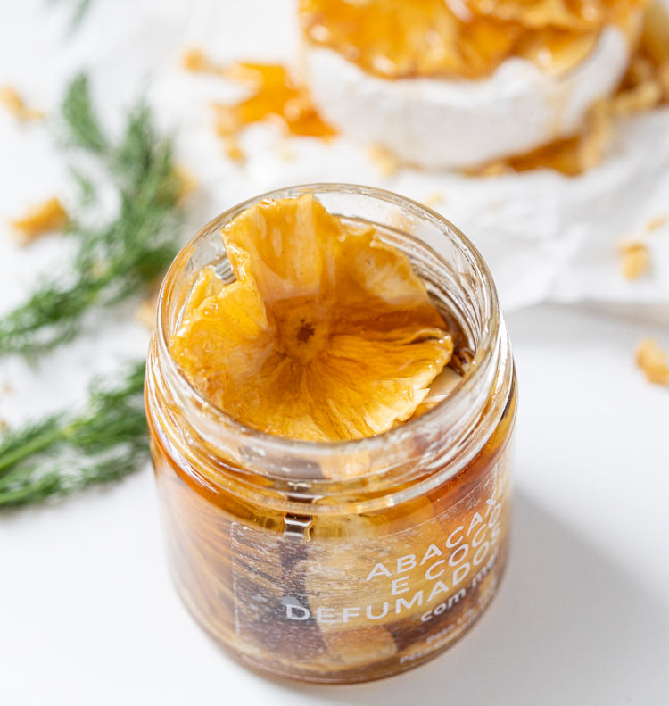 O Mel com Abacaxi e Coco Defumados é uma iguaria artesanal que combina a doçura do mel com o sabor exótico do abacaxi e a intensidade do coco defumado. Produzido pela Aysla Defumaria Artesanal, localizada no Sul de Minas Gerais, este produto oferece uma experiência sensorial única, ideal para acompanhar queijos, torradas ou como ingrediente em receitas sofisticadas.