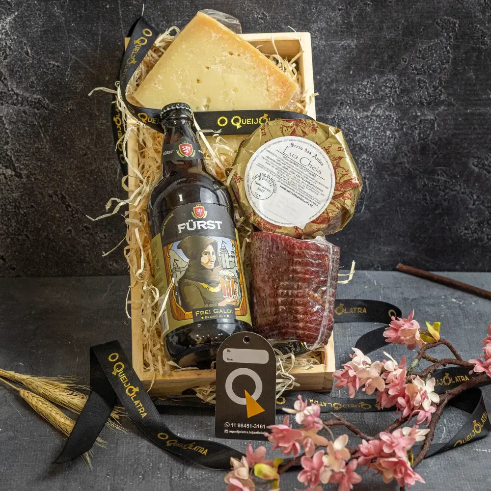 CESTA DE PRESENTE - 2 QUEIJOS + COPA + CERVEJA ARTESANAL
