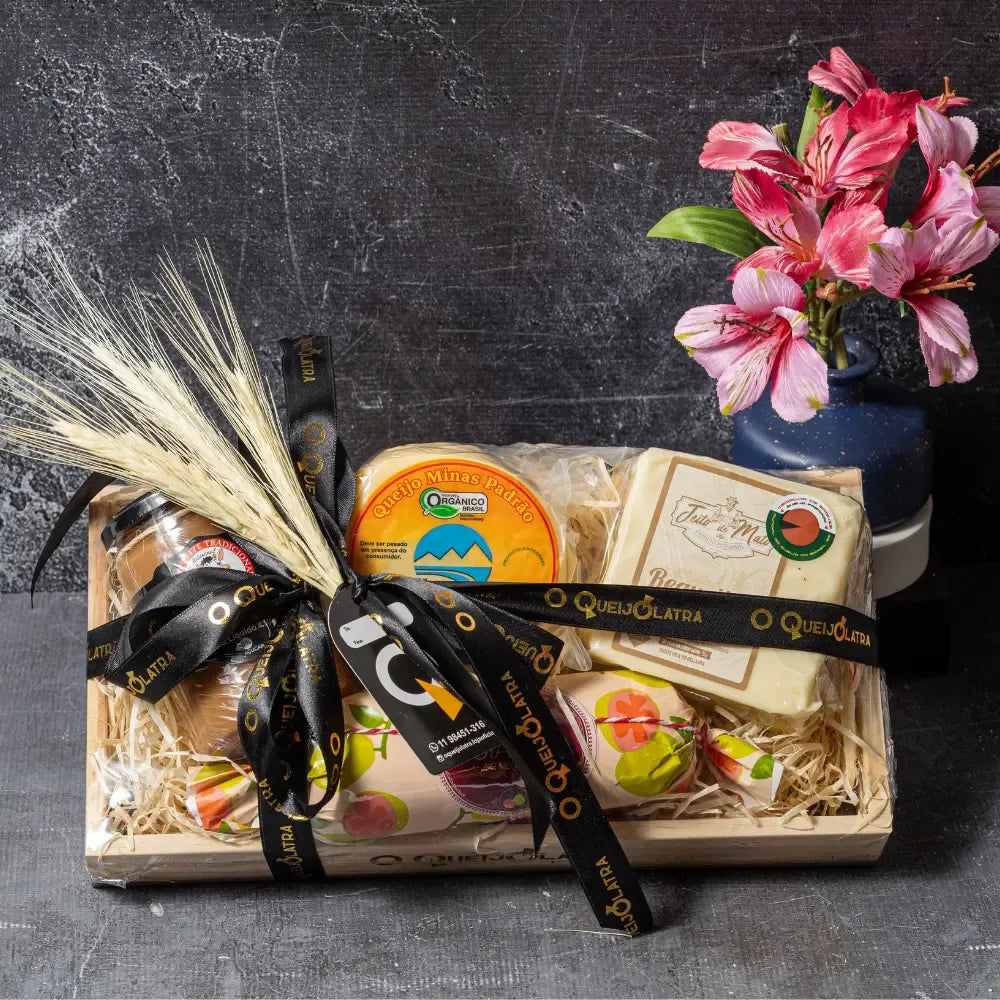 Um presente perfeito para que é apaixonado por queijos com goiabada e doce de leite, escolhemos 2 Queijos deliciosos e suaves para harmonizar com a melhor goiabada da vida, e um doce de leite suave e com apenas 8% de açucar. Certamente um presente inesquecível.
